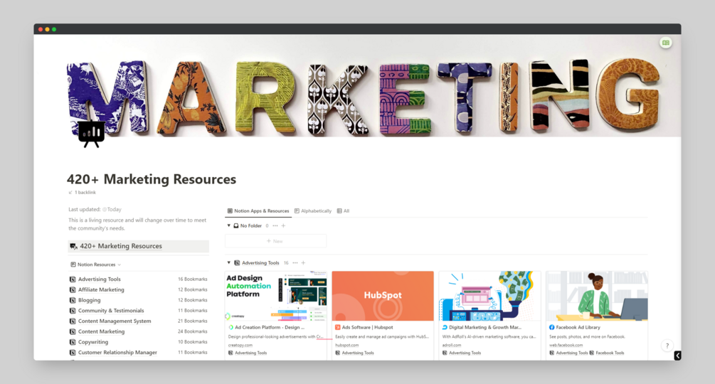 The only marketing resources list you'll ever need to choose for your next marketing tool, browser extension, web resource, and much more!