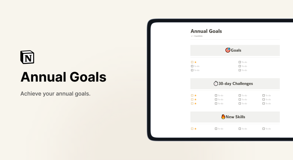 The Annual Objectives digital and printable template will help you determine your goals, allowing you to achieve them faster; all in Notion.