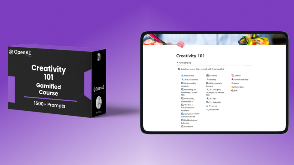 - Creativity 101 is the transformative online course that equips me with the tools, techniques, and mindset to unlock my creative potential. Combining advanced GPT-4 AI technology with gamification and compatible with Notion, it transforms traditional learning into a dynamic, effective, and enjoyable experience.