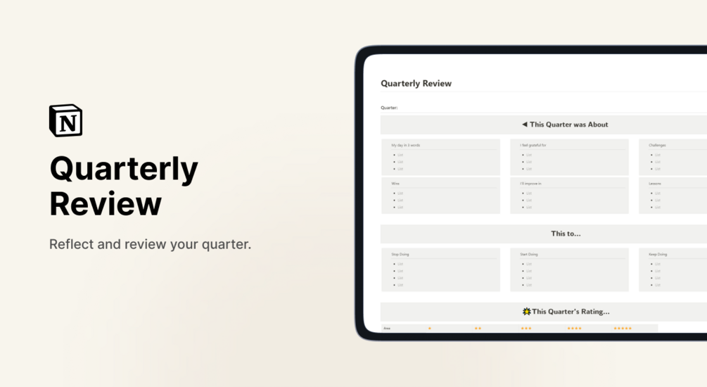 A collection of digital and printable reflection journals to help you reflect quarter by quarter in Notion.