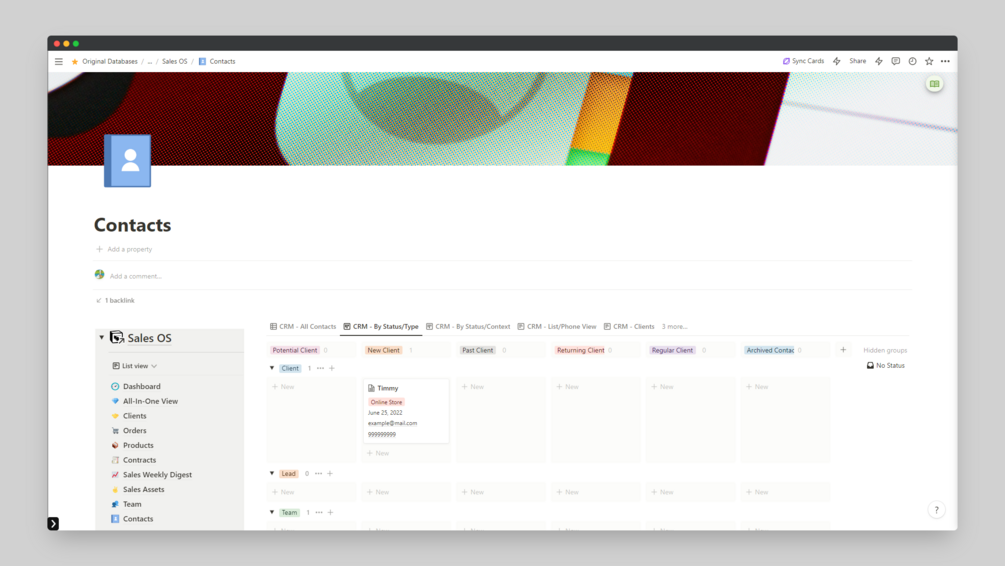 - Create a contact and organize it by customer, lead, or team